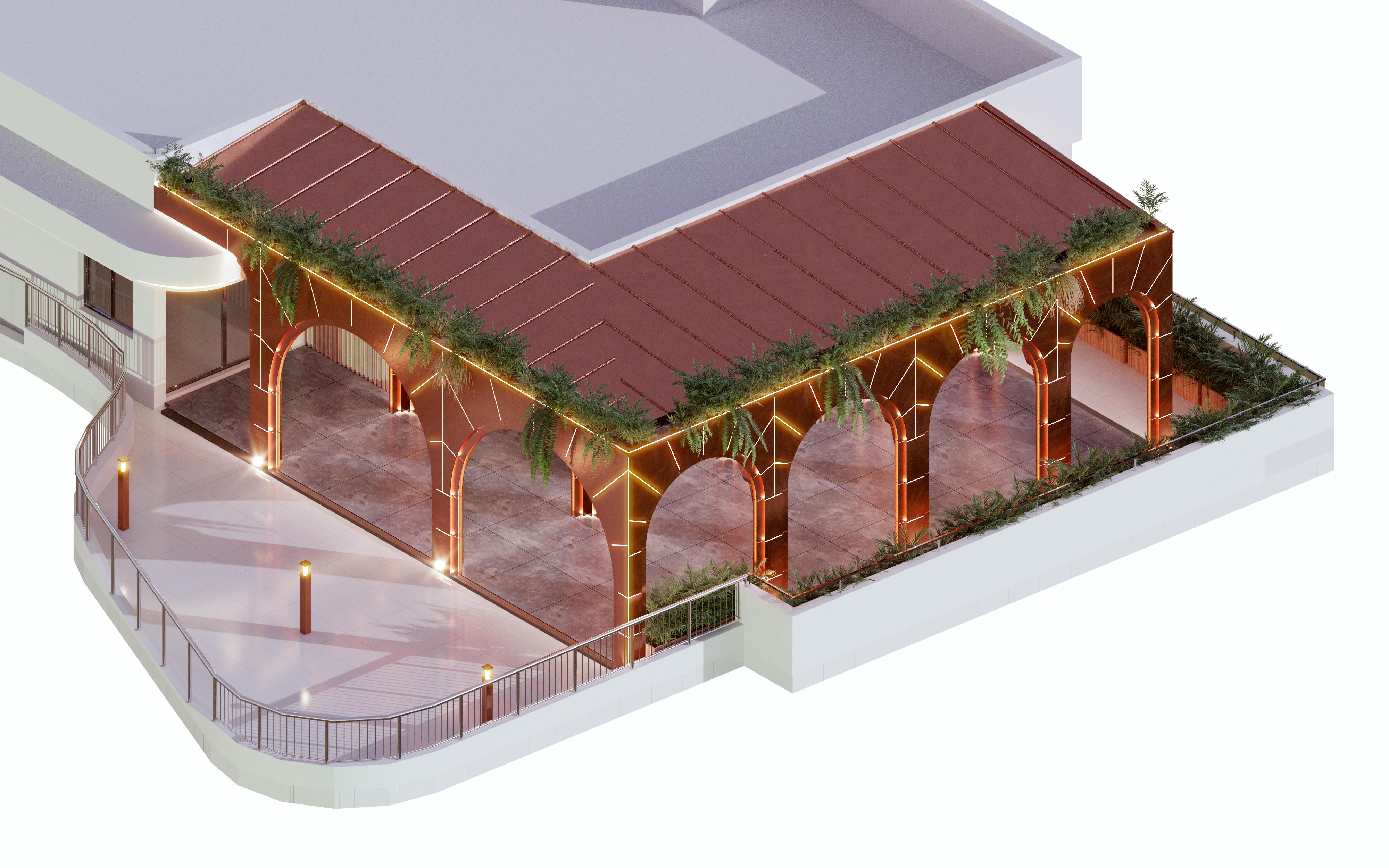 Situé sur un rooftop à Kinshasa Gombe, à une centaine de mètres du Fleuve Congo, le projet consiste en la création d'un espace de réception privé avec un bar et ses espaces de détente.